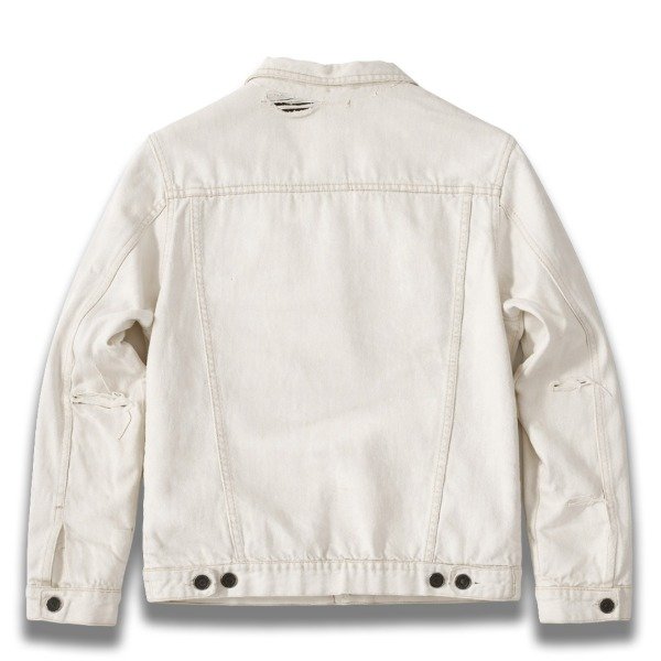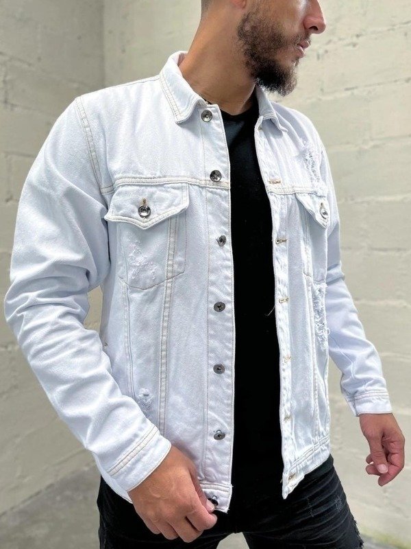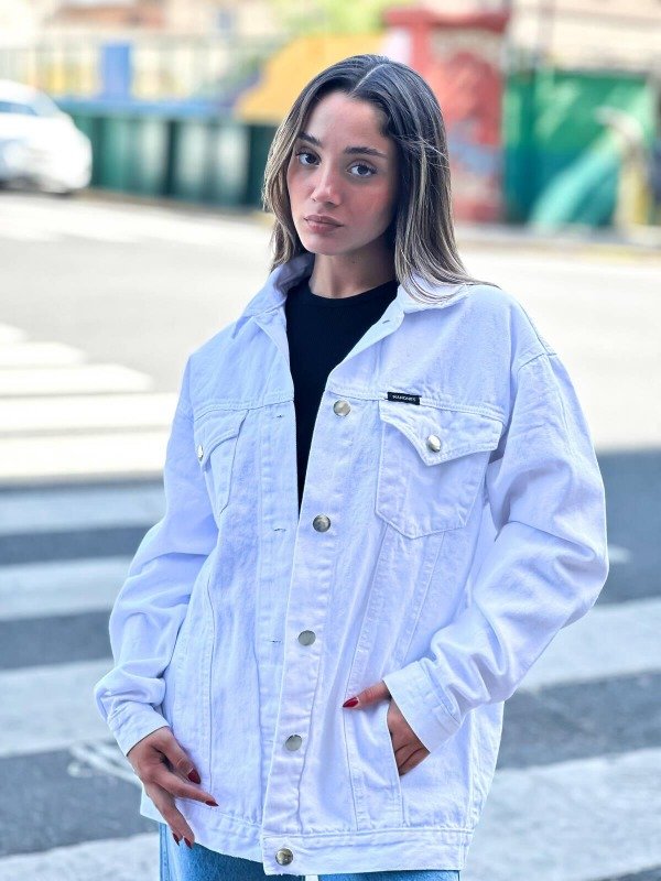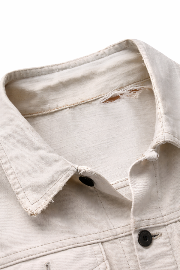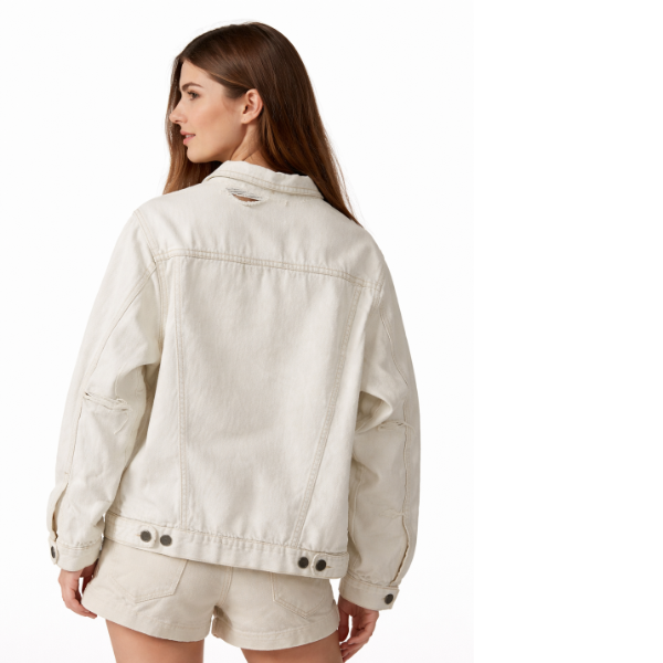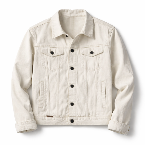 Denim off-white, corte clásico, botones metálico. Hasta ahí, todo correcto.